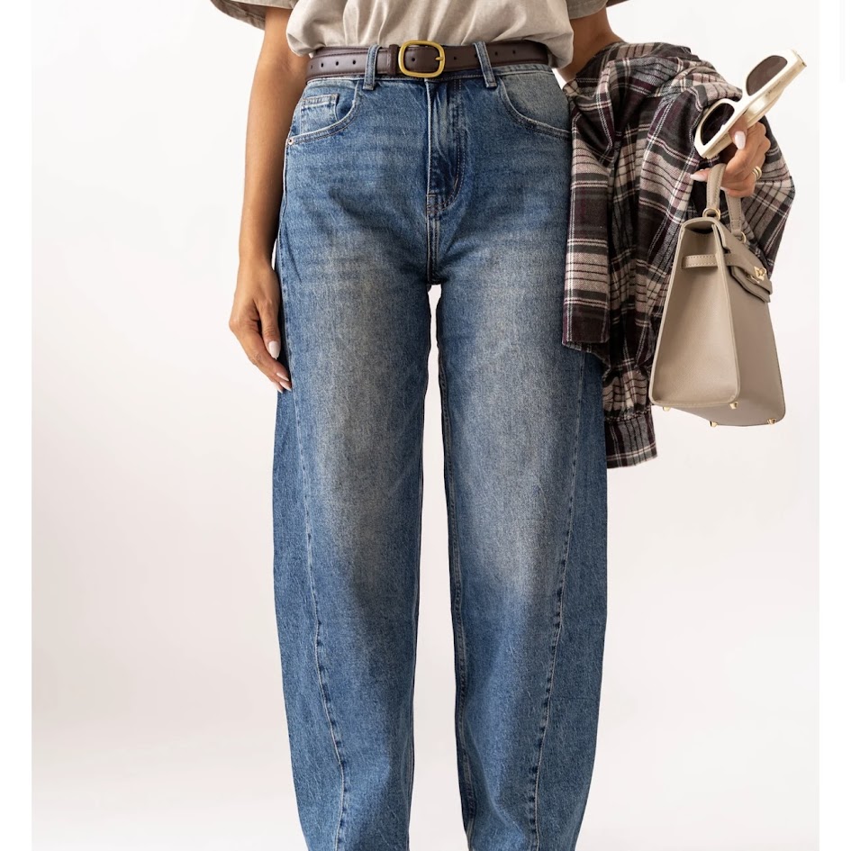 Jeans ballon vita alta elasticizzato sagomato in vita donna