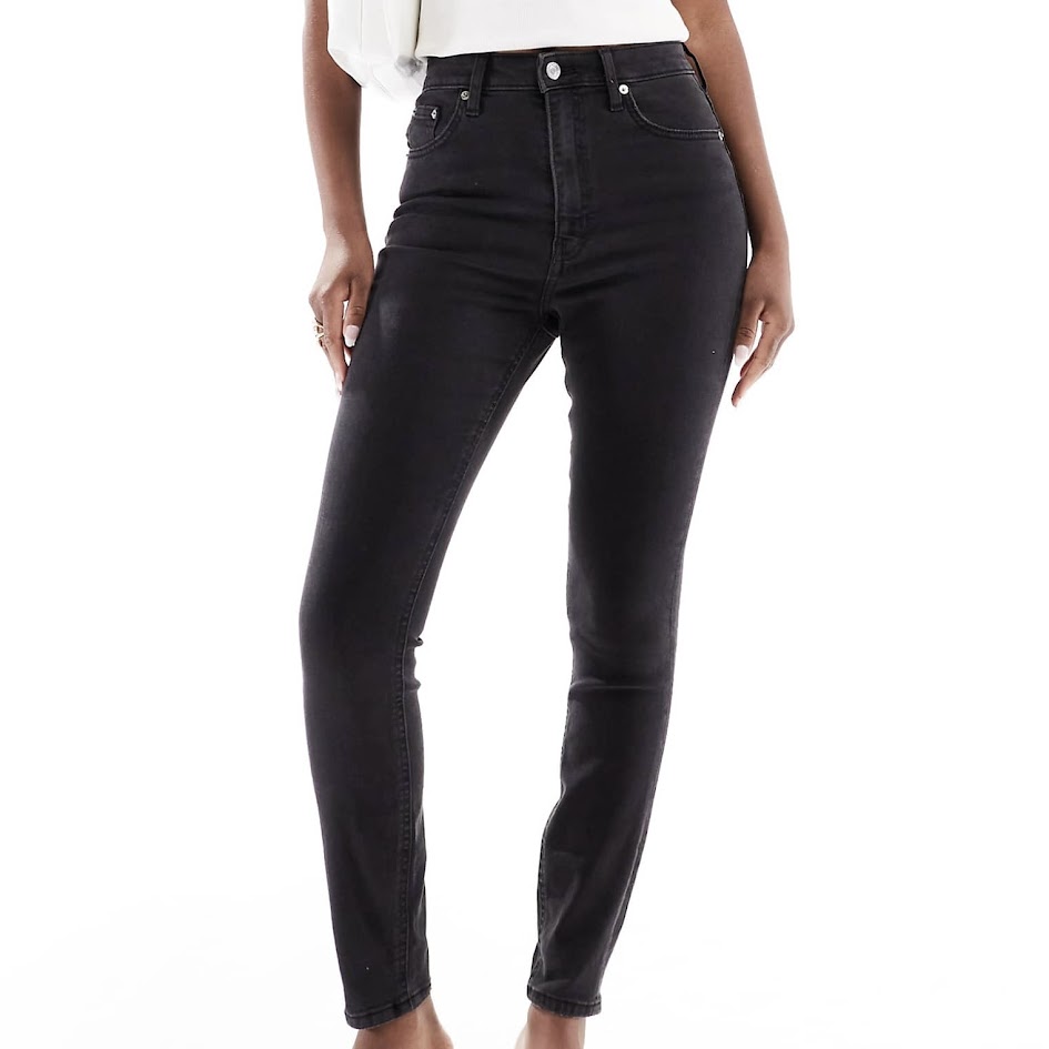 Jeans nero sfumato skinny vita alta elasticizzato donna