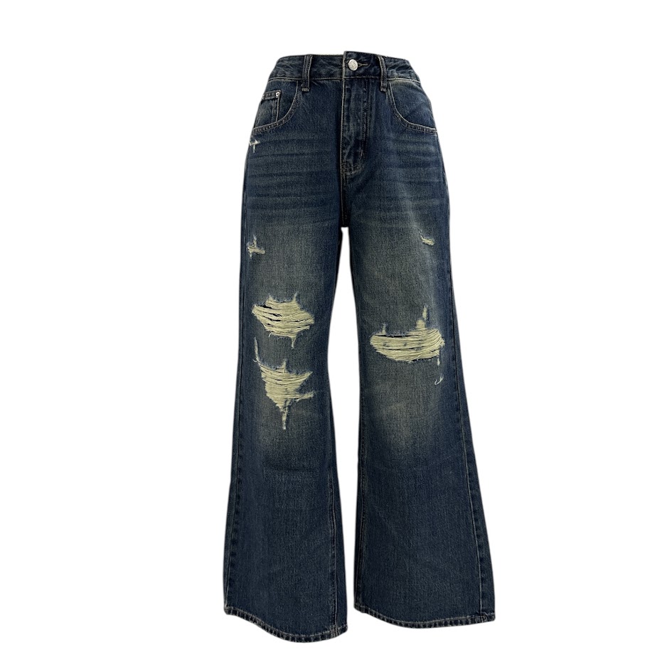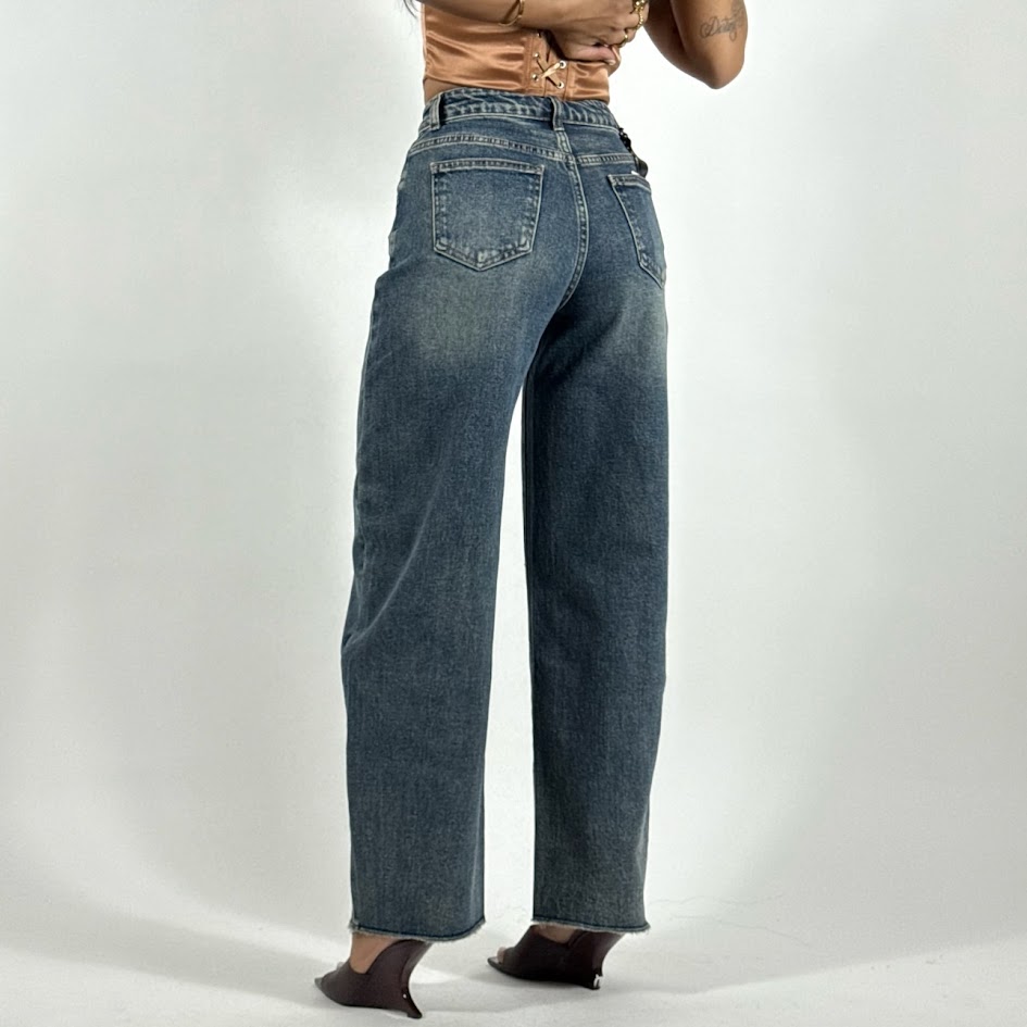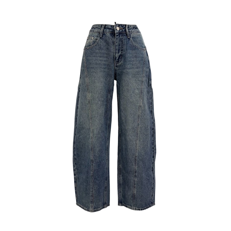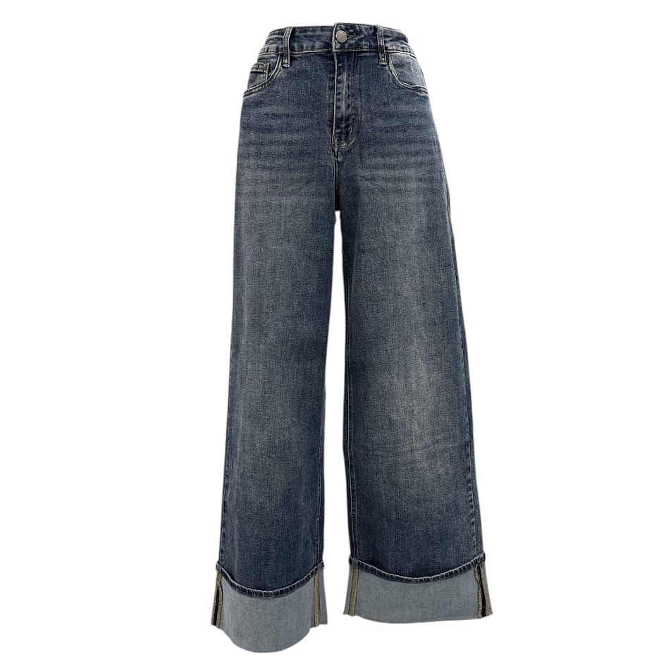 Jeans baggy vita alta denim palazzo elasticizzato donna