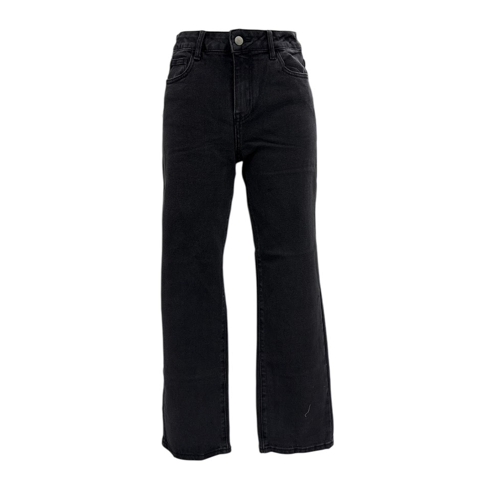 Jeans retto nero sfumato vita alta elasticizzato donna