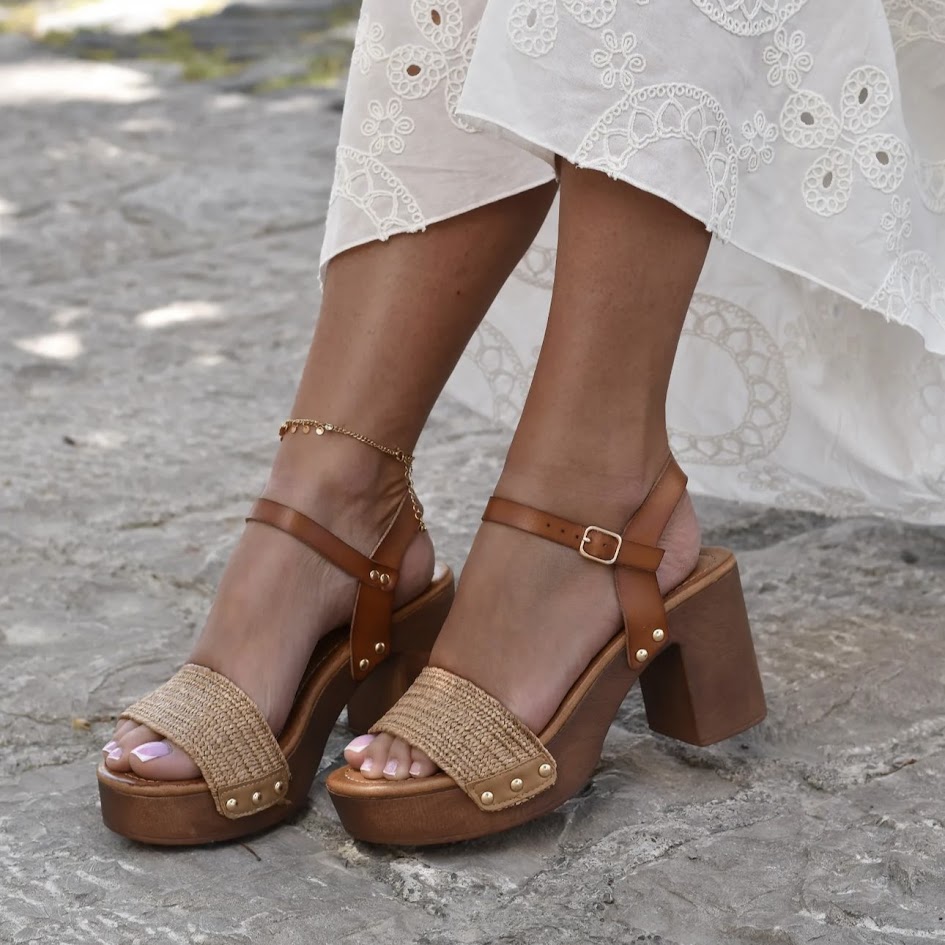 Sandalo tacco alto plateau fibbia corda donna